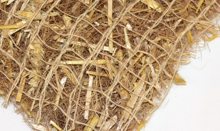 Je 50% Stroh- und Kokosfasern mit Jutefaden versteppt.