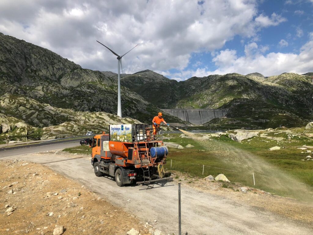 Hydrosaat im Kurzstrohverfahren für die Umgebungsflächen